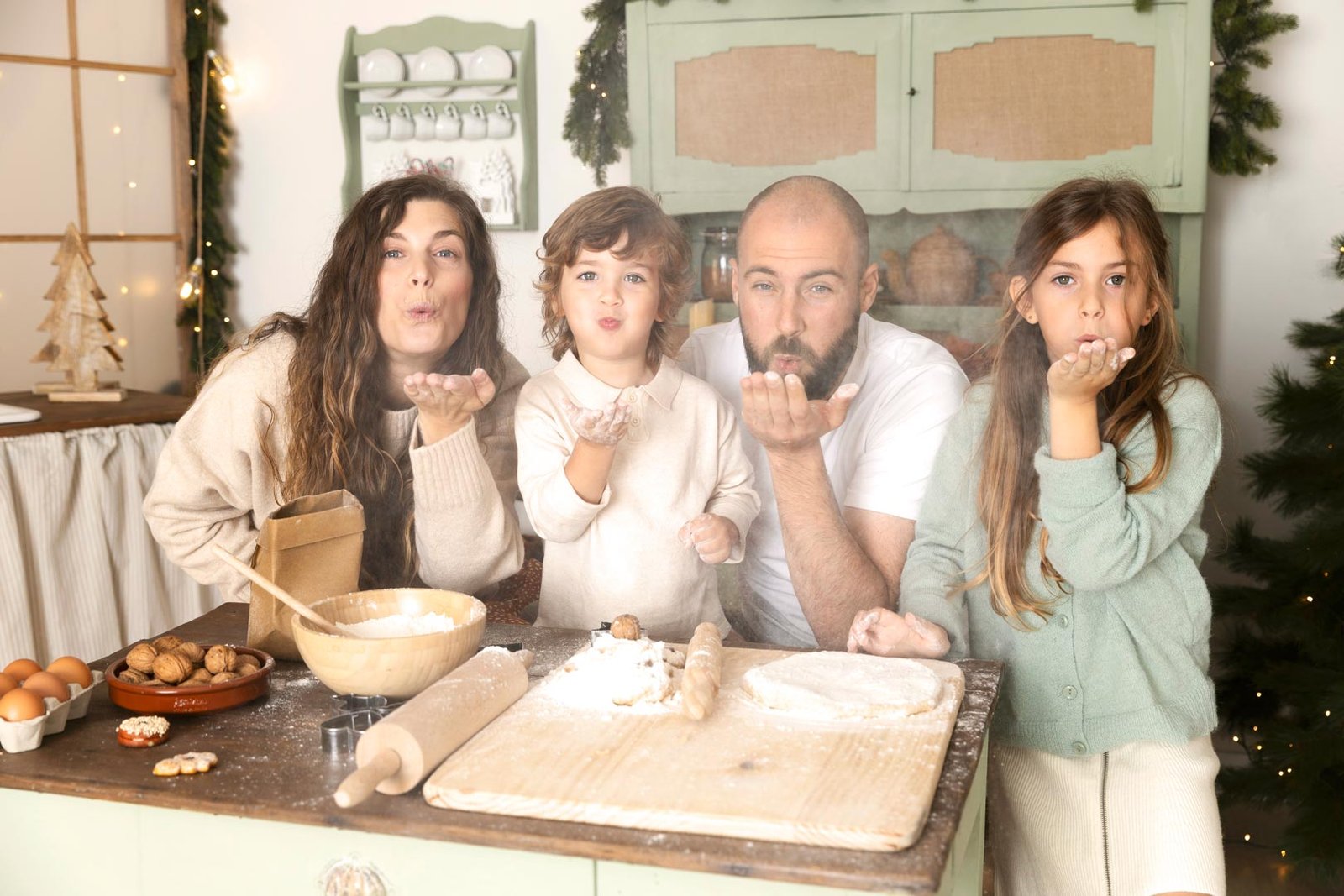 ¡Bienvenidos a nuestra Navidad! Este año, hemos preparado algo muy especial para ti y tu familia. Imagina a tus pequeños cubiertos de harina, con sonrisas
